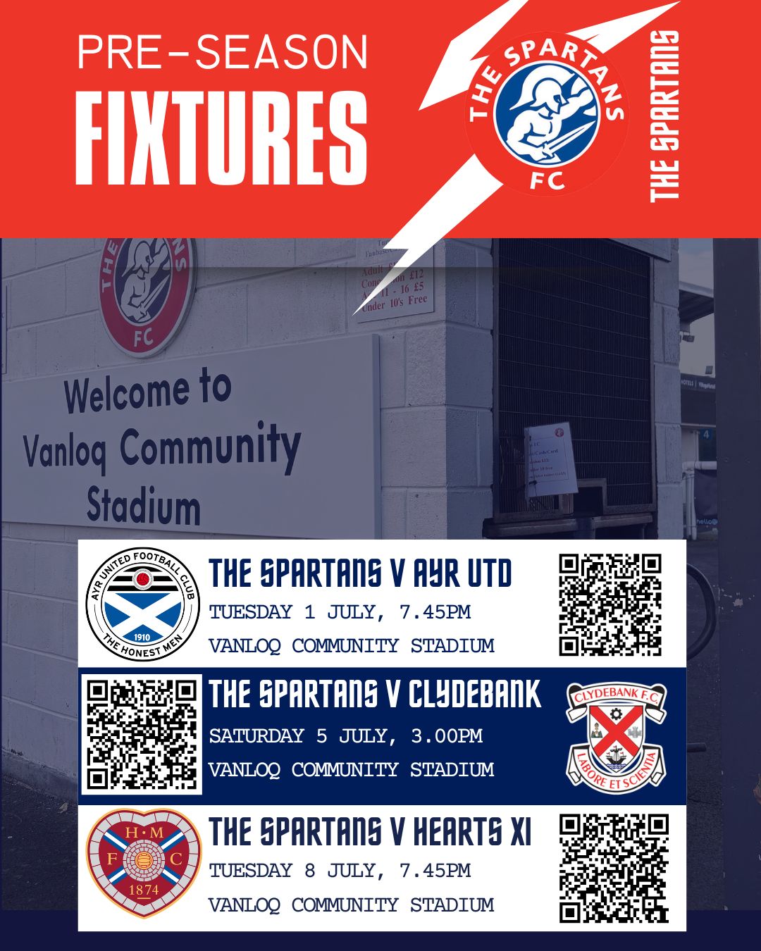The Spartans will play three pre-season friendlies – all at the Vanloq Community Stadium – in the run up to their Premier Sports Cup campaign.