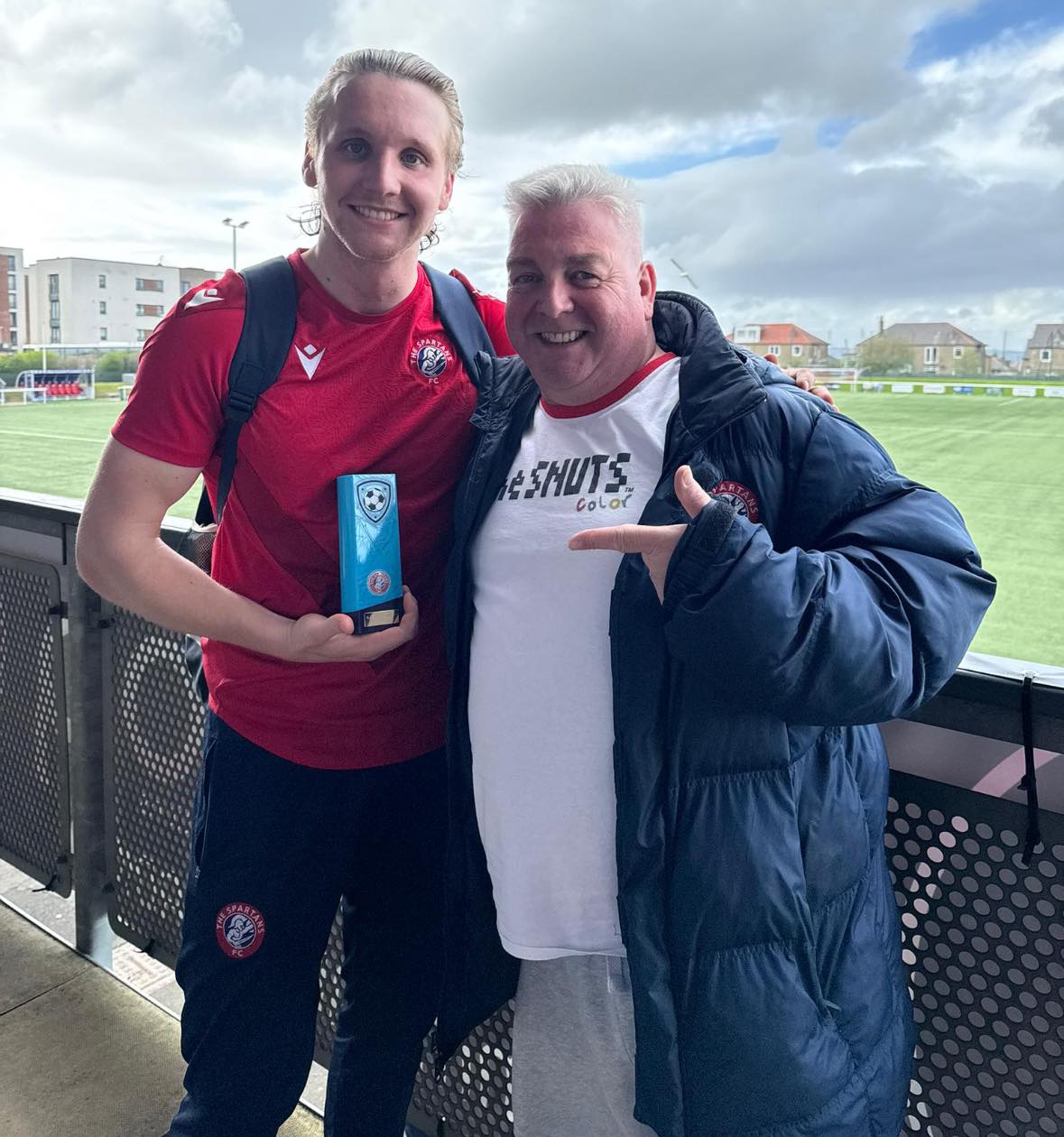 Kieran is pictured receiving the award from Spartans fan extraordinaire, Grim.